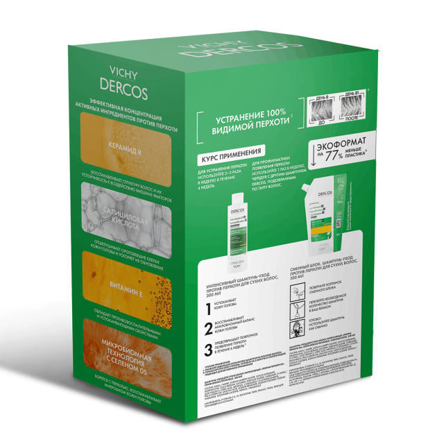 2. VICHY DERCOS Интенсивный шампунь-уход против перхоти для сухих волос (сменный блок).