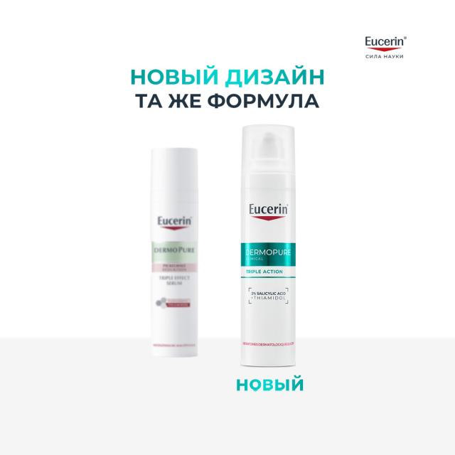 Сыворотка с тройным действием для проблемной кожи Eucerin DermoPure подходит для проблемной жирной кожи, склонной к акне и постакне (поствоспалительной гиперпигментации). Подходит для всех фототипов кожи.