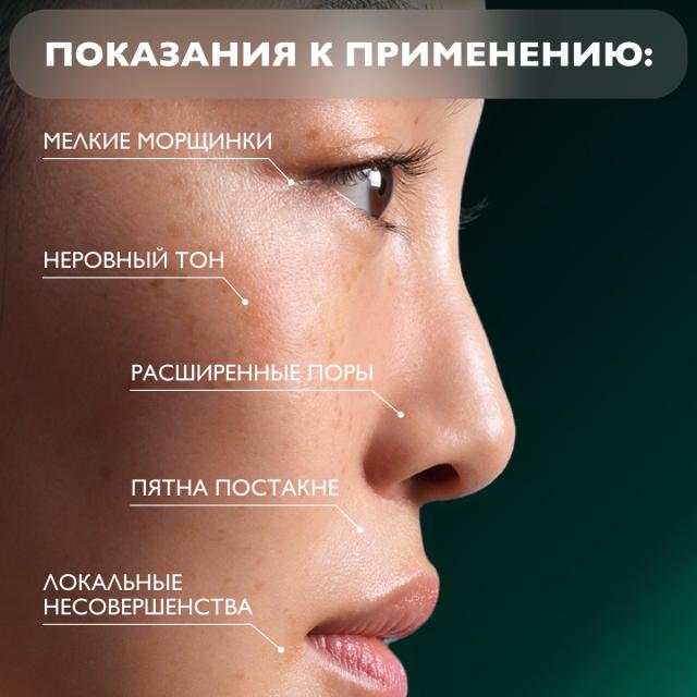Показания к применению: несовершенства, расширенные поры, следы постакне. Неровный тон лица, линии обезвоженности, потеря упругости. Подходит для взрослой кожи, склонной к акне.