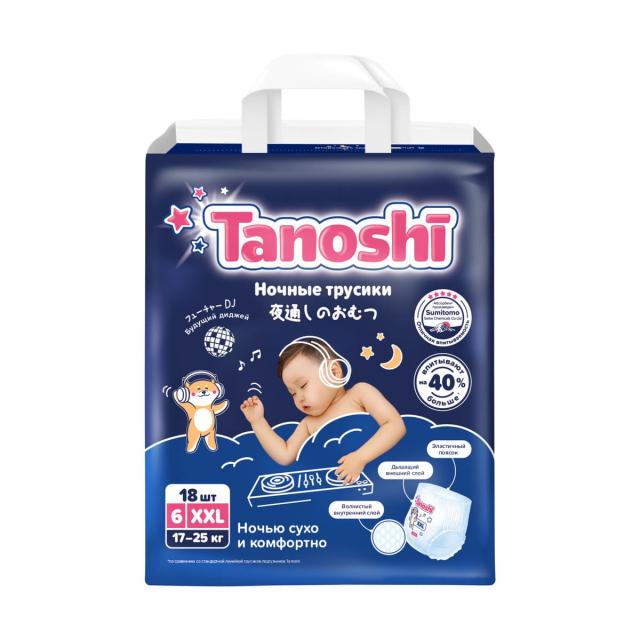 Ночные трусики-подгузники для детей Tanoshi, Baby Night Pants, одноразовые, размер XXL (6, 17-25 кг), 18 шт