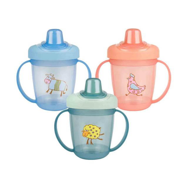 Поильник имеет небольшой вес и удобные ручки, что позволяет малышу легко держать его самостоятельно.