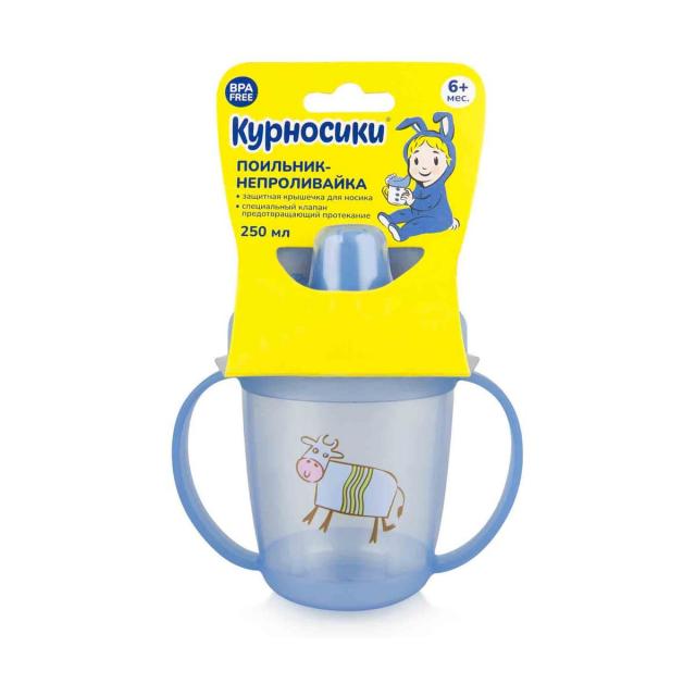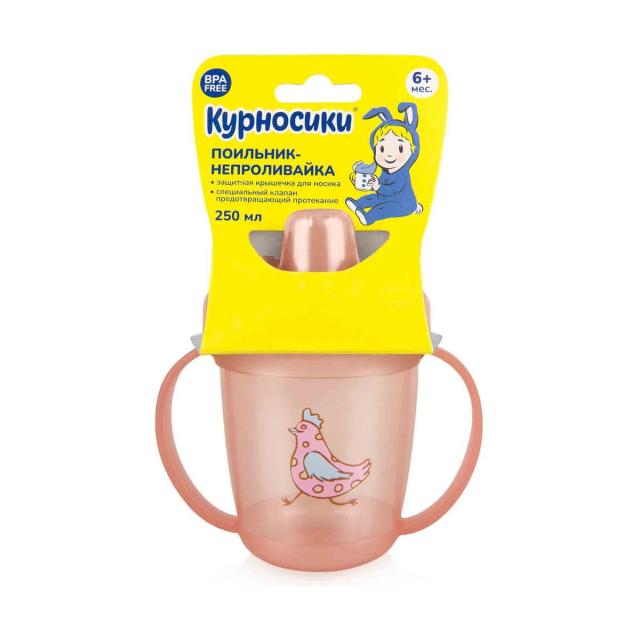 Малыш учится пить из чашки С поильником-непроливайкой «Курносики»® успехи не заставят себя ждать! Ребенок легко освоит новые навыки благодаря специальному "жесткому" носику с клапаном непроливайкой. Яркий привлекательный дизайн понравится маме и малышу.