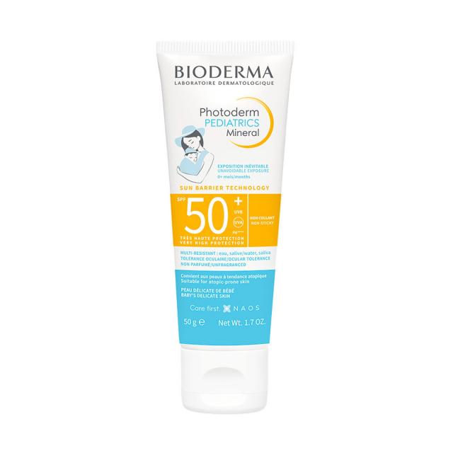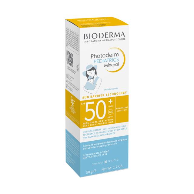 Photoderm Pediatrics Mineral SPF50+ Солнцезащитный детский крем для лица и тела для младенцев с 0 месяцев (за исключением недоношенных младенцев). Подходит для кожи, склонной к атопии. Обладает высокой степенью солнцезащиты SPF50+ и широким спектром защиты от UVB лучей и длинных и коротких UVA лучей.