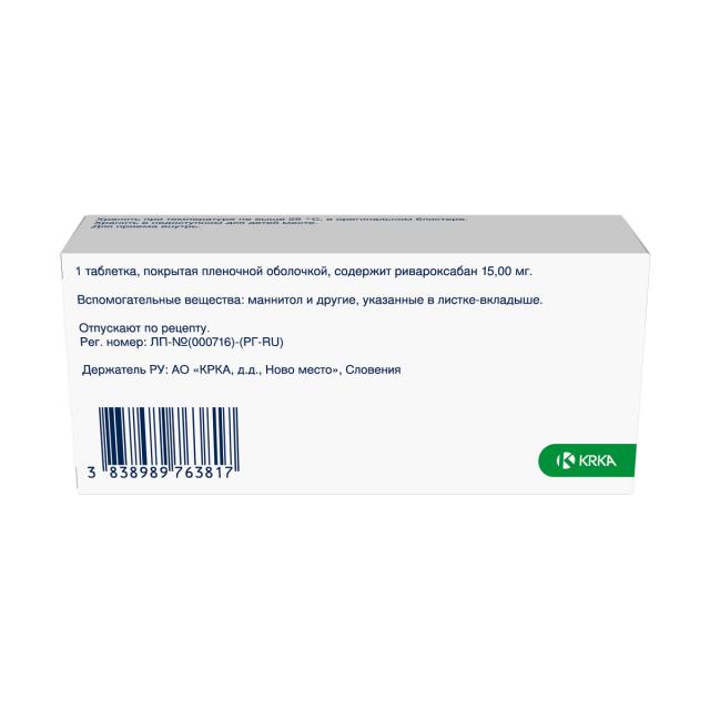 Ривароксия, 15 мг, таблетки, покрытые пленочной оболочкой