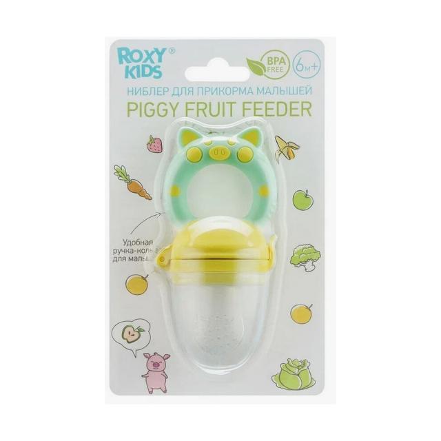 Ниблер ROXY-KIDS для прикорма с силиконовой сеточкой Piggy. Мятно-желтый