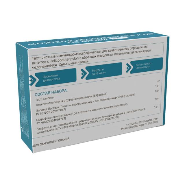 Предназначен для одноэтапного быстрого качественного определения антител IgG к Helicobacter pylori в образцах сыворотки, плазмы или цельной крови человека методом иммунохроматографического анализа (ИХА) с целью цервичной диагностики инфекции Н. pylori