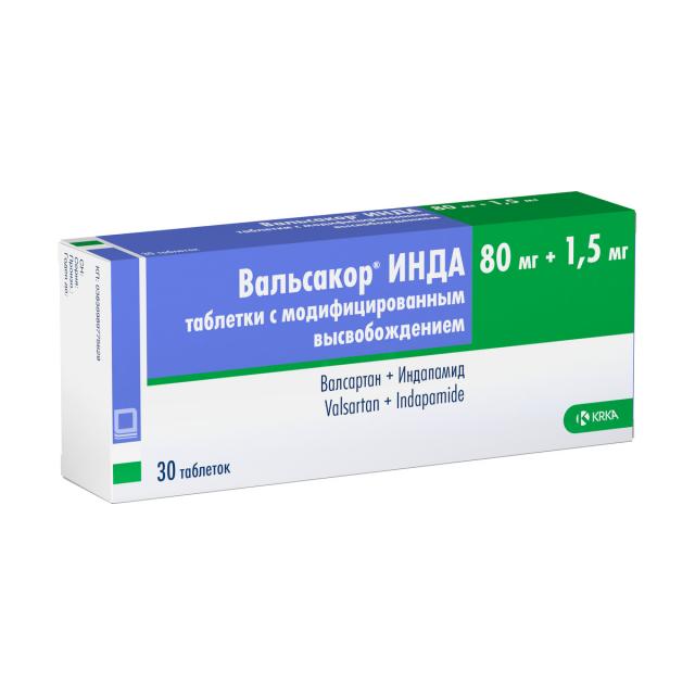 Вальсакор Инда таблетки с модифицированным высвобождением 80мг+1,5мг №30