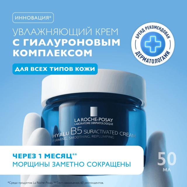 Увлажняющий крем против морщин HYALU B5 с комплексом из трех форм гиалуроновой кислоты разглаживает морщины, повышает упругость и эластичность кожи.