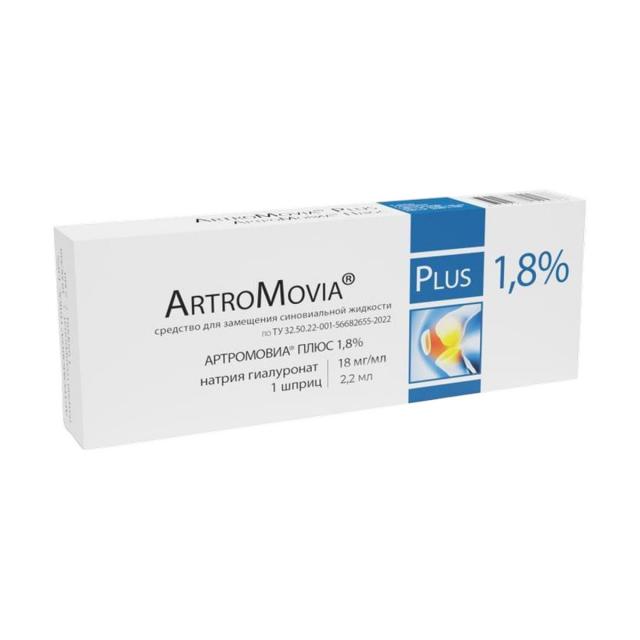 - Средство для замещения синовиальной жидкости ArtroMovia™ Plus (АртроМовиа™ Плюс) концентрацией 1,8% (18 мг/мл), объемом 1/2/2,2 мл, в шприце объемом 1/2,25/3 мл – 1/2/3 шт.;