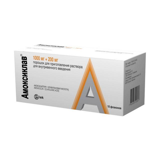 Амоксиклав порошок для приготовления раствора внутривенно 1000мг+200мг №10