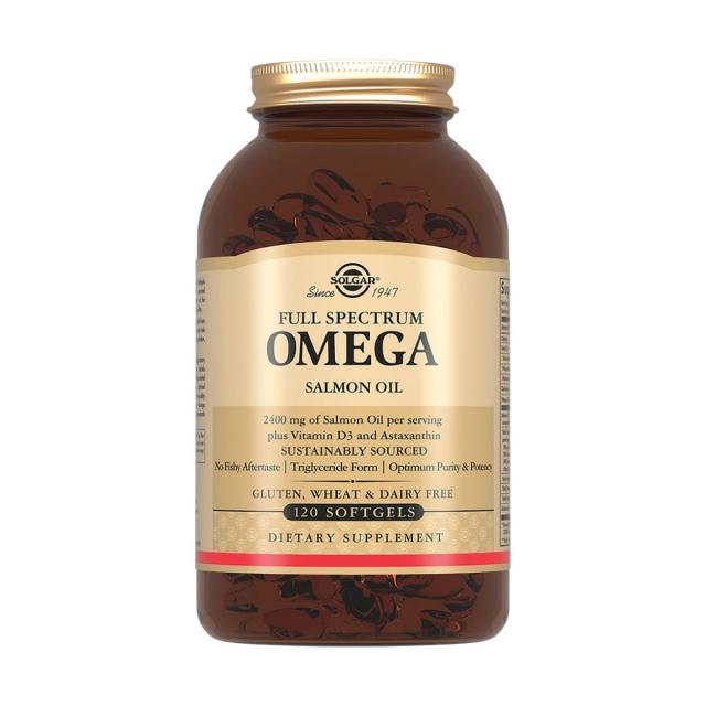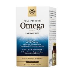 Омега-комплекс из дикого океанического лосося Solgar — это источник полиненасыщенных жирных кислот омега-3, омега-5, омега-6, омега-7 и омега-9 в натуральной триглицеридной форме, усиленных витамином D3. Продукт получен из экологически чистого сырья — дикого лосося, выловленного в холодных водах Норвегии. Сырье сертифицировано организацией «Friend of the Sea», что гарантирует экологически ответственный вылов. Для устранения рыбного послевкусия и усиления антиоксидантного действия в состав добавлены натуральные экстракты розмарина, шалфея и тимьяна. Продукт не содержит ГМО, глютена, искусственных консервантов, красителей, молочных компонентов и сахара. Не является лекарством.