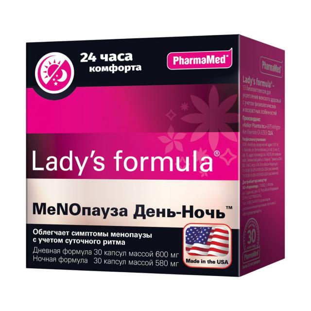 Если женщина с трудом контролирует эмоции, быстро устает, рассеянна, просыпается от горячих приливов и сильной потливости, ей подойдет Lady's formula Менопауза День-Ночь – комплекс из 7 экстрактов лекарственных растений, который обеспечивает эмоциональный и физический комфорт на протяжении 24 часов. Это единственный на российском рынке 100%-но растительный комплекс для устранения симптомов менопаузы с учетом суточного ритма. Дневная формула устраняет приливы, потливость, улучшает настроение, повышает активность и работоспособность. Ночная формула устраняет ночные приливы и потливость, восстанавливает нормальный сон (засыпание, отсутствие ночных пробуждений) и обеспечивает полноценный отдых ночью. Ladys formula Менопауза День-Ночь не имеет побочных действий, не вызывает привыкания, рекомендован Российским обществом акушеров-гинекологов.