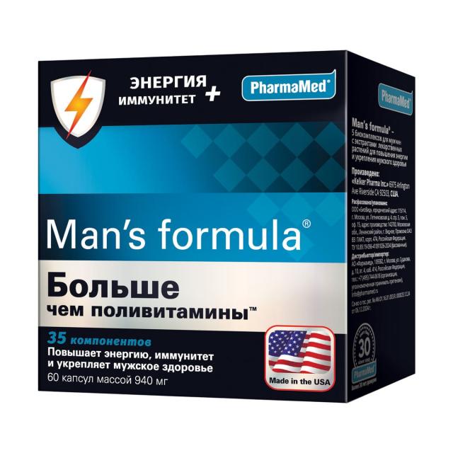 Биокомплекс Man's formula «Больше чем поливитамины Энергия + Иммунитет» произведен в США в соответствии с международным стандартом качества фармацевтического производства GMP и сертифицирован по стандарту Евразийского соответствия (Eurasion Conformity).