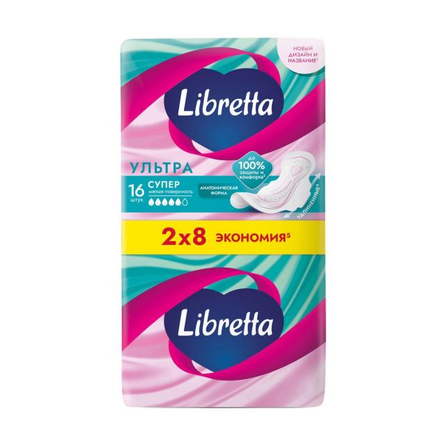 Либретта (Librretta) ультра супер - прокладки с мягкой поверхностью и анатомической формой обеспечивают до 100% защиты и комфорта*, чтобы ты чувствовала себя в гармонии со своим телом в "эти дни". Они быстро поглощают и удерживают влагу, что дает чувство сухости и комфорта. Благодаря анатомической форме прокладка плотно прилегает к телу и надежно защищает от протеканий. А мягкая поверхность и дышащий верхний слой обеспечивают нежное прикосновение.