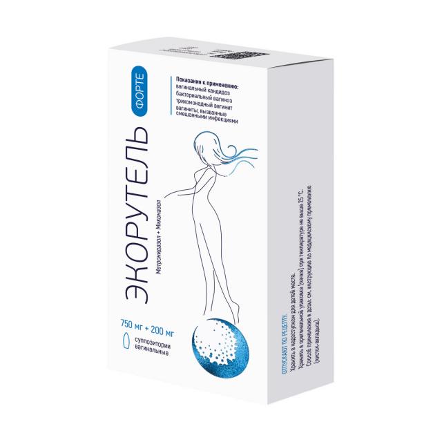 Экорутель Форте суппозитории вагинальные 750мг+200мг №7