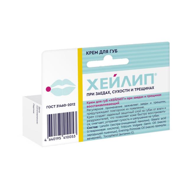 Крем Хейлип от заед и трещин на губах на основе ланолина и натуральных масел специально разработан для восстановления кожи губ при заедах.