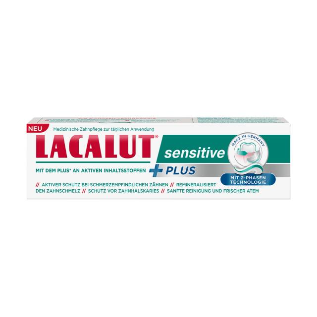 Зубная паста Lacalut sensitive plus содержит комплекс компонентов, снижающих болезненную чувствительность зубов уже через несколько чисток. Двойная комбинация фторидов и гидроксиапатит реминерализуют зубную эмаль, хлорид калия уменьшает неприятные болевые ощущения. Антисептик и лактат алюминия в составе пасты снижают воспаление и кровоточивость десен. Глюконат цинка, ментол и анетол снижают количество бактерий в полости рта и устраняют неприятный запах. Растительные компоненты бисаболол, масло эвкалипта и рамнолипиды усиливают противовоспалительное действие зубной пасты.