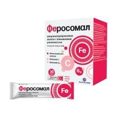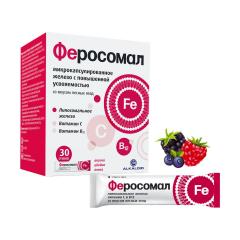Феросомал содержит железо в виде липосомального комплекса. Железо покрыто фосфолипидной оболочкой (липосомой) и не вступает в прямой контакт со слизистой оболочкой пищеварительного тракта. Благодаря этому обеспечивается высокая всасываемость, хорошая переносимость. Витамины С и В12 дополнительно повышают эффективность усвоения железа.