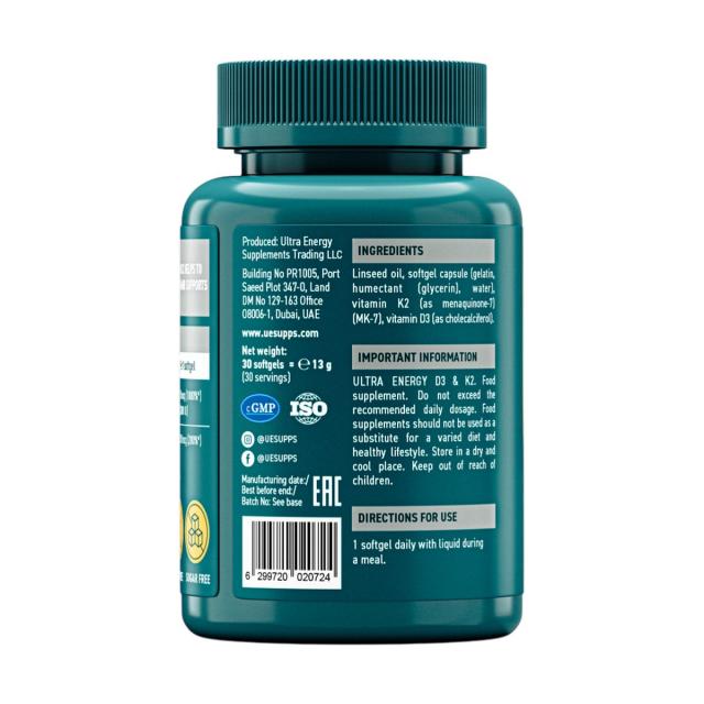 УЕСАППС Ультра Энерджи Витамин Д3+К2 капсулы №30