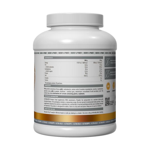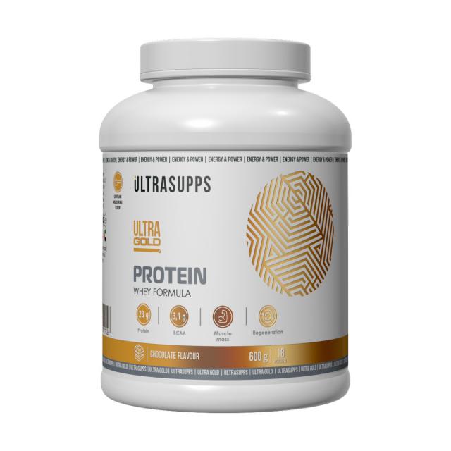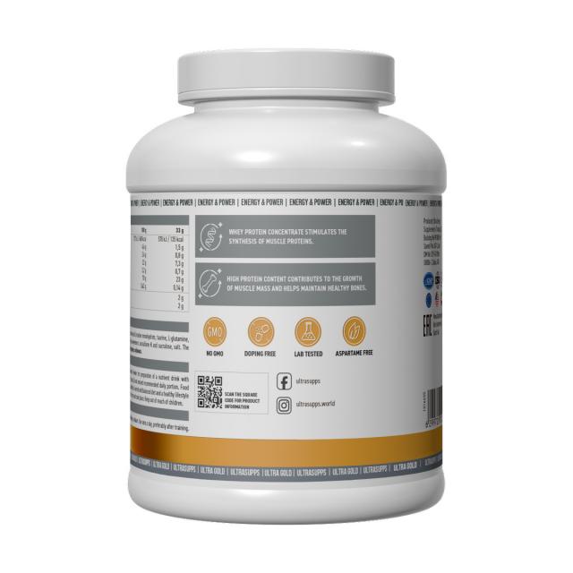 Биологически активная добавка Ultra Gold Protein от бренда ULTRASUPPS — 23 г белка на порцию в форме биодоступного концентрата сывороточного протеина, это лучший источник белка для быстрого наращивания мышечной массы и повышения физической выносливости.
