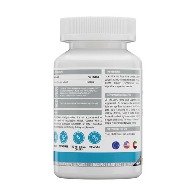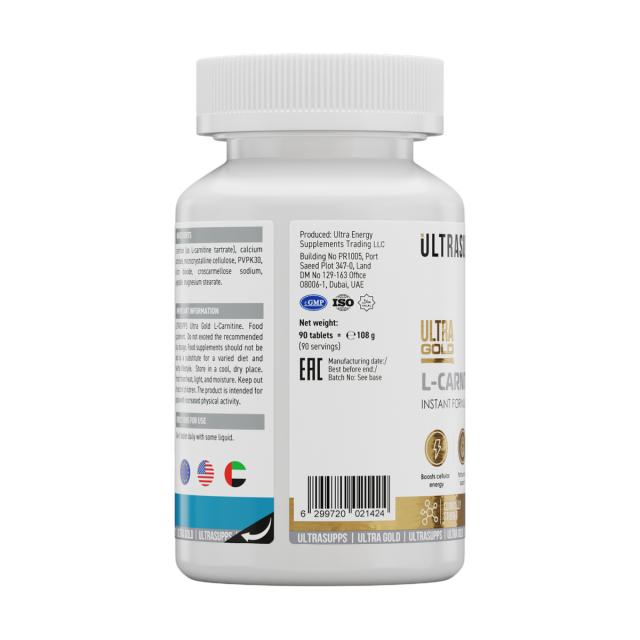 Ultra Gold L-Carnitine от бренда ULTRASUPPS — в форме L-карнитина тартрата, ваш помощник в формировании желаемого рельефа тела, увеличении сухой мышечной массы и снижении веса, повышении умственной активности, реабилитации после когнитивных расстройств.