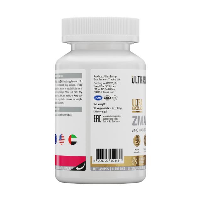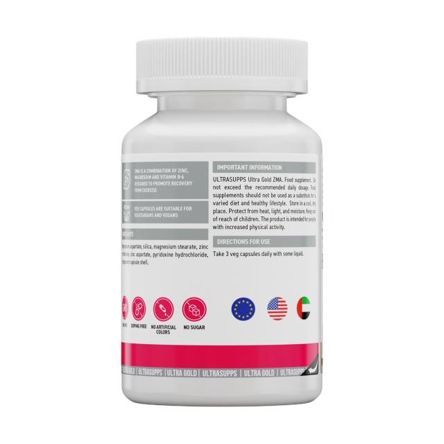 Ultra Gold ZMA от бренда ULTRASUPPS — ваш премиальный сбалансированный комплекс цинка, магния и витамина В6 для достижения высоких спортивных результатов и поддержания общего здоровья. Употребление добавки также рекомендуется для повышения уровня тестостерона.