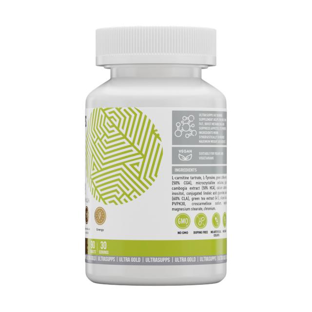 Ultra Gold Fat Burner от бренда ULTRASUPPS — ваш помощник в наращивании сухой мышечной массы и контроле веса. Комплекс представляет собой оптимальное сочетание компонентов для стимуляции здорового метаболизма и снижения аппетита: аминокислоты L-карнитин тартрат и L-тирозин, конъюгированную линолиевую кислоту (CLA), пиколинат хрома, инозитол, натуральные растительные экстракты.