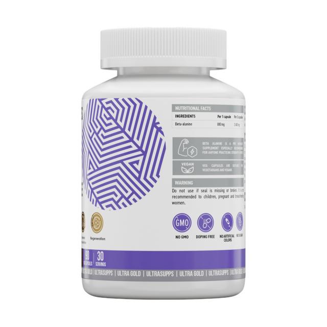 Ultra Gold Beta-Alanine в капсулах от бренда ULTRASUPPS — 2400 мг в бета-аланина в порции для достижения лучших спортивных результатов. Продукт рекомендован тем, кто занимается циклическими видами спорта, требующими высокой выносливости. Прием бета-аланина перед тренировкой помогает увеличить длительность физической нагрузки за счет повышения работоспособности. Добавка подготавливает организм к высоким нагрузкам, чтобы вы могли тренироваться продуктивно и с удовольствием. Ultra Gold Beta-Alanin способствует увеличению концентрации карнозина, что уменьшает степень закисления мышц, а значит отдаляет наступление усталости. Продолжая работать и после тренировки, бета-аланин помогает поддерживать сдерживать увеличения уровня молочной кислоты в мышцах для более быстрого восстановления, что позволяет следовать намеченному плану физических нагрузок и быстрее добиваться поставленных перед собой целей.