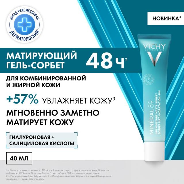 Виши Минерал 89 гель-сорбет для лица матирующий увлажняющий 48ч 40мл