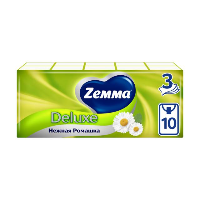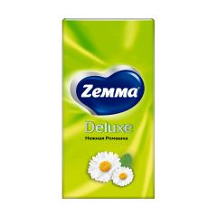 Бумажные платочки Zemma Deluxe Нежная Ромашка с ароматом ромашки не только прочные, но еще и очень мягкие, чтобы вы чувствовали себя комфортно и уверенно вне зависимости от маленьких неурядиц, которые могут случиться в дороге, при занятии спортом или нанесении макияжа.