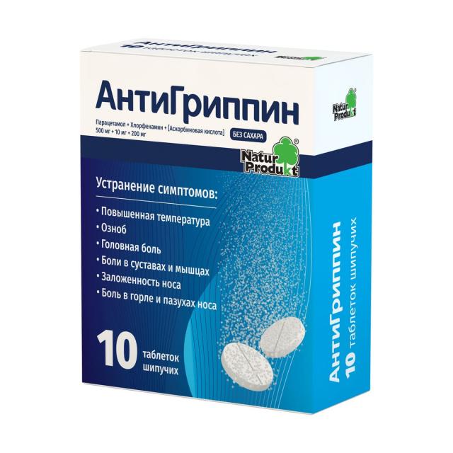 Болеутоляющее,жаропонижающее, противовоспалительное, противоаллергическое. Парацетамол успешно снижает высокую температуру, снимает болевые ощущения и ломоту. Витамин С (аскорбиновая кислота) поддерживает иммунитет. Хлорфенамина малеат снимает аллергические и катаральные проявления (отек, жжение, чихание, першение) и, благодаря мягкому снотворному действию, способствует нормализации сна. Благодаря растворимой форме, активные компоненты быстрее всасываются и начинают действовать сразу после приема, не повреждает слизистую оболочку желудка. Шипучие таблетки не содержат сахара. Источник дополнительной жидкости, необходимой во время болезни.