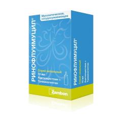 Муколитическое и сосудосуживающее действие Ринофлуимуцила® является отражением фармакологических свойств действующих веществ, входящих в его состав.
