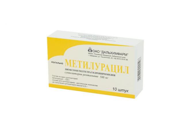 Активные вещества: метилурацила - 0,5 г;
