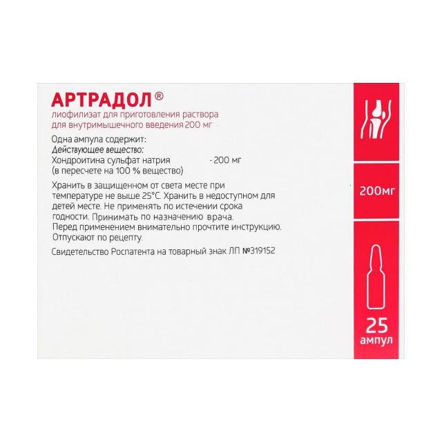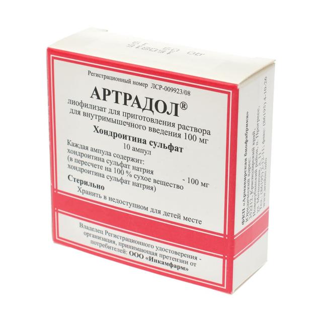 Артрадол (хондроитин сульфат) лиофилизат для приготовления раствора внутримышечно 100мг №10