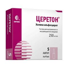 Церетон раствор внутривенно и внутримышечно 250мг/мл 4мл №5
