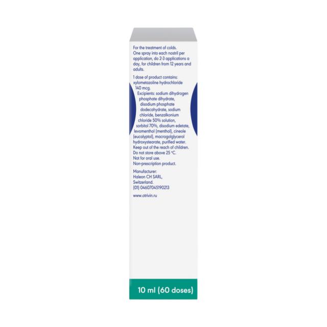 Отривин® хорошо переносится пациентами с чувствительной слизистой оболочкой, его воздействие не препятствует отделению слизи. Отривин® имеет сбалансированное значение рН, характерное для полости носа.