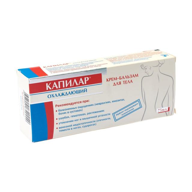При варикозном расширении вен и венозной недостаточности (тяжести в ногах, отечности, судорогах) крем-бальзам улучшает капиллярный кровоток, увеличивает просвет капилляров и объем крови в капиллярном русле, за счет чего позволяет уменьшить нагрузку на крупные сосуды. Крем-бальзам КАПИЛАР укрепляет стенки сосудов, уменьшает их повышенную проницаемость, способствует улучшению тонуса вен. КАПИЛАР снимает воспаление сосудистой стенки, уменьшает отечность ног, оказывает обезболивающее действие.