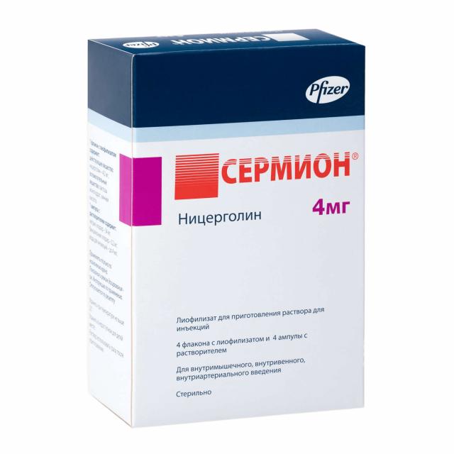 В связи с отсутствием специальных исследований в период беременности Сермион® противопоказан. На время применения препарата необходимо отказаться от грудного вскармливания, так как ницерголин и продукты его метаболизма проникают в молоко матери.