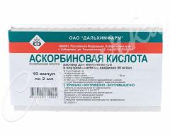 Аскорбиновая к-та раствор для инъекций 50мг/мл 2мл №10