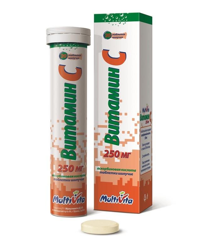 МультиВита Витамин С таблетки шипучие 250мг №20
