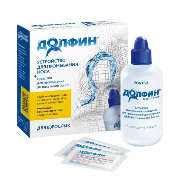 Долфин устройство для промывания носа д/взрослых 240мл + средства 2г N30