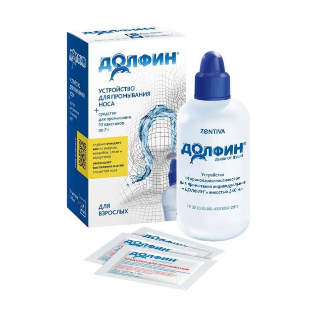 Долфин устройство для промывания носа д/взрослых 240мл + средства 2г N30