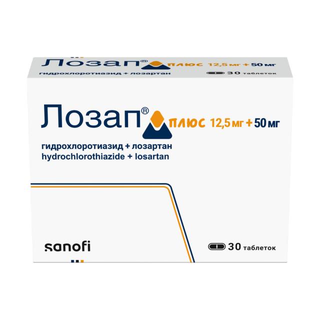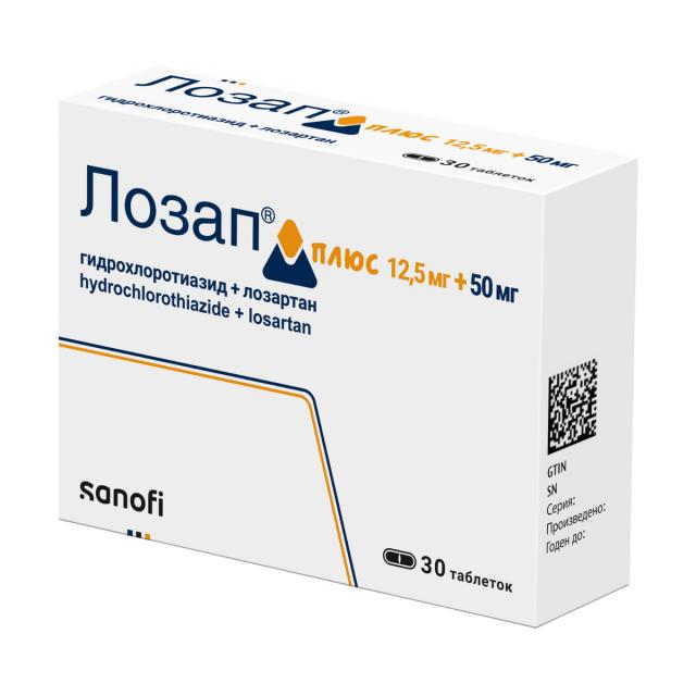 Лозап плюс таблетки покрытые оболочкой 12,5мг+50мг №30