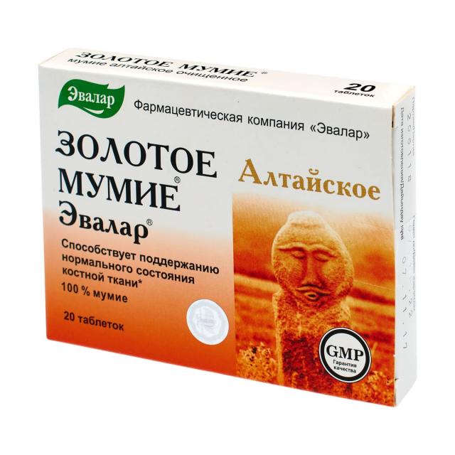Мумие золотое очищенное алтайское таблетки Эвалар №20